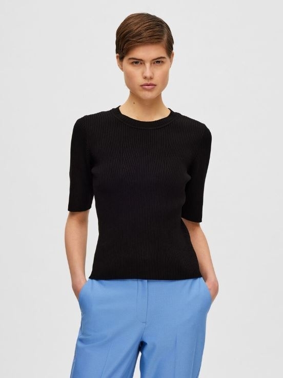 • Sweatshirt met korte mouwen en gebreide ribkraagSweatshirt met korte mouwen en gebreide ribkraag