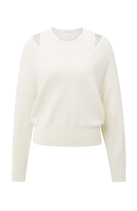 Beige trui met diepe v-hals van het merk Yaya. De trui bestaat uit twee losse items.