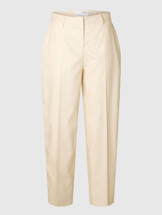 Mid waist, lichtegewicht broek met barrel fit die bij de pijpen uitloopt en bij de enkel tapstoe loopt van Selected Femme.