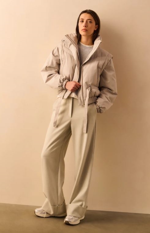 67% polyester, 30% ramie en 3% elastaan. De voering is 100% polyester.