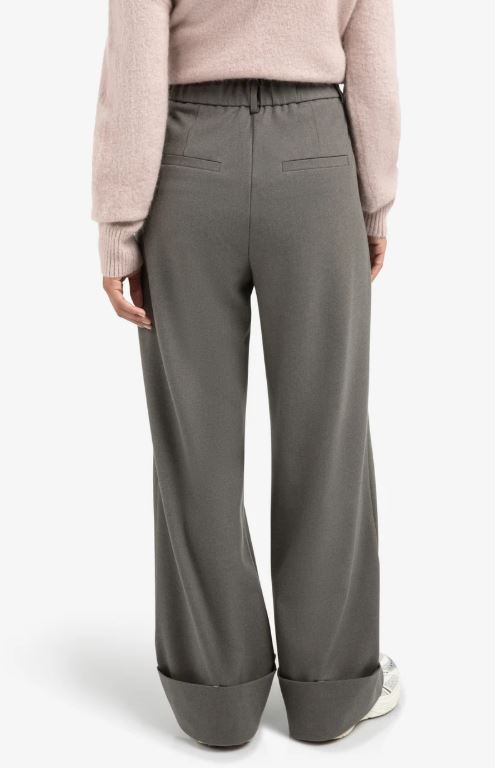 Broek met omslag detail aan de onderzijde van het merk Yaya. De broek heeft een middelhoge taille en wijde pijpen.